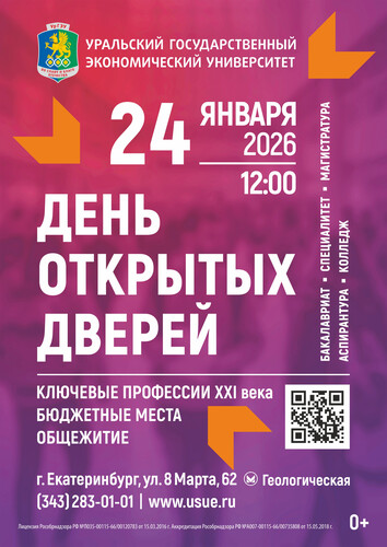 Уральский государственный экономический университет предлагает в рамках организации профориентационной работы для старшеклассников посетить различные мероприятия и День открытых дверей, который состоится 24 января 2026 года