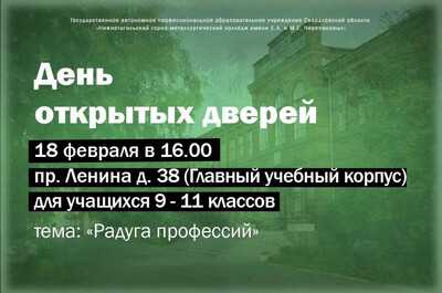 ГАПОУ СО «Нижнетагильский торгово-экономический колледж» приглашает учащихся 8-11 классов и их родителей, а также специалистов по профориентации школы на Единый день открытых дверей в рамках федерального проекта «Профессионалитет»!